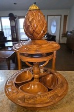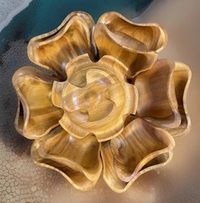 Mcm Tiki Monkey Pod WOOD Lotus Tidbit Chip & Dip Bowl Snack Lazy Susan