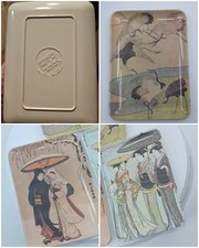 Vtg Mebel Italy Melamine Trays SET 3 Japanese Art Geisha Cranes Ukiyo-e 1960s