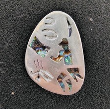 MID CENTURY VINTAGE TAXCO STERLING SILVER MOTHER OF PEARL SCREW EARRING BROOCH