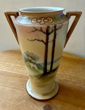 Vintage Mid-Century Japanese Hand-Painted Porcelain Scenic Vase 2 Handles