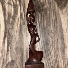 Vintage Hand Carved Wooden African Woman Statue 11” Mid Century Tribal Style