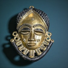 Vintage African Style Brass Tribal Wall Mask Mid Century Decor 1960s 70s
