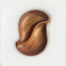 Vintage Mid Century Monkey Pod Divided Wooden Serving Bowl Canoe Shape
