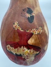 LRG Vintage Mid-Century Hawaiian Tiki-Style Painted Gourd - Hula Dancer Folk Art