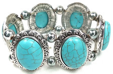 MCM Bracelet Oval Turquoise In Silver Tone Setting 1950s