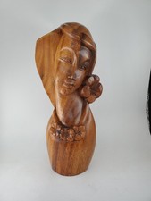 Vintage Hand Carved Monkey Pod Wooden Hawaiian Woman, Mid-century Modern