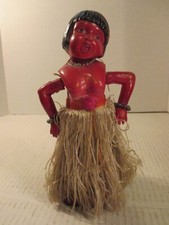 Vintage 30’s Red Hawaiian Wind-Up Doll Aloha Hula Dancer JAPAN Celluloid Tin Toy