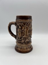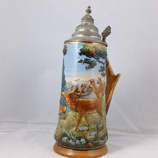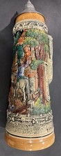 Vintage German Ceramic Large Beer Stein Deer Hunter Embossed Nature (Repaired)