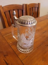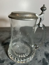 Vintage Rein Zinn Bleifrei Etched Elk Clear Glass Lidded German Beer Stein Mug