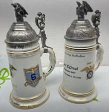 Original Antique German Regimental Reservist Lithopane Porcelain Beer Steins 12"