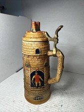 Vintage German BEER STEIN Ceramic Castle Lid Top 9" H King Jester Pw