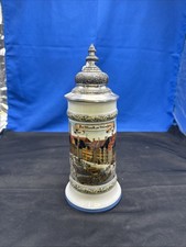 Vintage German Lidded Beer Bier Stein Ceramic Mug 7" Tall