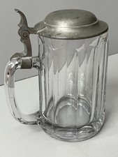 Antique German Heavy Lead Glass Beer Stein with Pewter Lid
