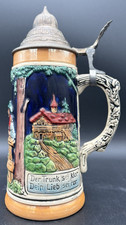 German Beer Stein Mug Lidded Cottage Farm Design Stunning