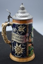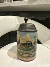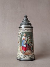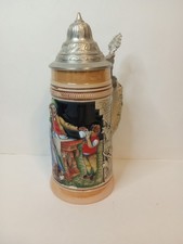 Rare Antique German Beer Stein with Pewter Lid Breweriana Collectible Drinkware