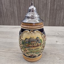 Vintage German Beer Stein Jug With Pewter Lid Mint Condition