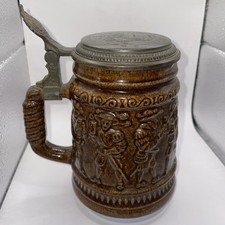 Vintage Authentic German Beer Stein Tankard with Metal Flip Lid Western Germany