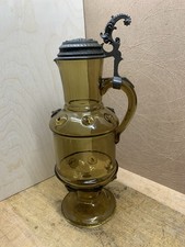 Antique German Theresienthal Amber /olive Green Glass Beer Stein/Pitcher c.1880s
