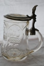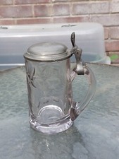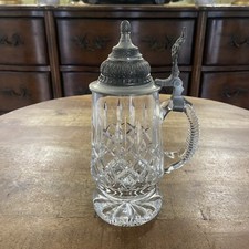Antique German Heavy Lead Glass Beer Stein with Pewter Lid