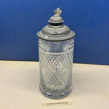 Vintage Or Antique Cut Crystal Glass Pewter Lidded Tankard Stein Beer Glass 9.5”