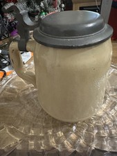 German Stein - Antique, Pewter Lid Ceramic Drinking Mug 13cm Vintage