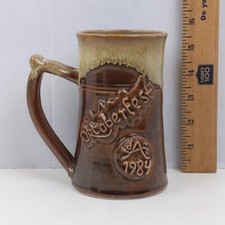 Vintage Oktoberfest 1984 Stoneware Beer Mug Handcrafted Brown Drip Glaze Stein