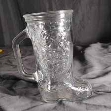 Vintage Clear Glass Cowboy Boot Fancy Design Beer Mug Stein