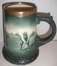 Rare antique Lenox porcelain tankard mug with golf scene sterling silver rim