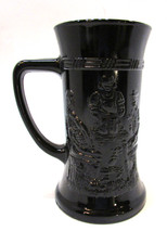 Vintage Indiana Glass Tiara Black Amethyst Beer Mug w Embossed Old Tavern Scene