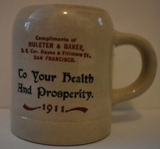RARE Antique 1911 Huleter Baker San Francisco CA Advertising Stoneware Beer Mug