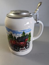 Rare Ceramic Beer Mug /Stein - 2 Antique Cars with Pewter Lid - 0.5 Litter