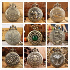 Unisex Vintage Unique Dial Quartz Pocket Watch Analog Bronze Chain Open Face