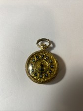 Tiny Vintage Or Antique Gold Color Pocket Watch Floral Pattern