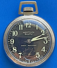 VINTAGE 1940's WESTCLOX SCOTTY POCKET WATCH LUMINOUS VERY CLEAN GLASS WORKS