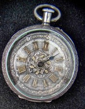 Swiss Antique Mechanical Pocket Watch 800 Silver Case 6 Rubis Working