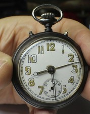 ANTIQUE VINTAGE JUNGHAMS ALARM WORKS POCKET WATCH - GUN METAL CASE RUNS *NICE*