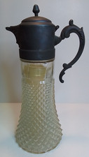 Antique Vintage Silver Plated Crystal Carafe Pitcher & Honeycomb Glass Decanter