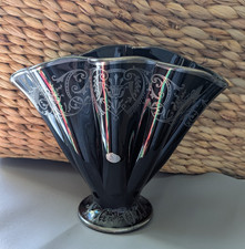 1930’s Art Deco Black Porcelain Sterling Silver Vase! (10 IN W 8 IN H 4 IN W)