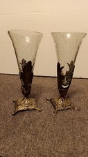 Vintage Pair of Glass Crystal Bud Vases Wheat Etched Fluted Missing Silver Bases