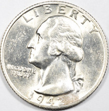 1942 Washington Quarter AU/UNC 90% Silver 25c Coin U.S GOOD DETAILS