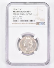 Mint Error AU58 1964 Washington Quarter Struck On Defective Planchet NGC *8857