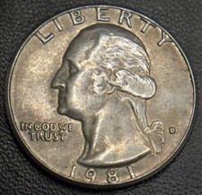 1981-D Washington Quarter – Clad Layer Missing – 5.55g Planchet Error