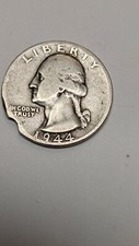 Clipped Planchet 1944 Washington Silver Quarter Mint Error