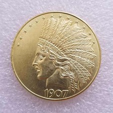 1PCS 1907 Antique Liberty Indian Head $10 Dollar Coin, Uncirculated Morgan Silve