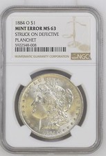 1884 O Morgan Silver Dollar NGC MS-63 Defective Planchet Mint Error