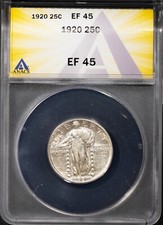 1920 Silver 25c Standing Liberty XF 45 ANACS # 7625502 + Bonus