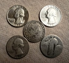 Nice Lot of 5 Standing Liberty, 2 AU/BU Washington & Barber 25C Quarters.