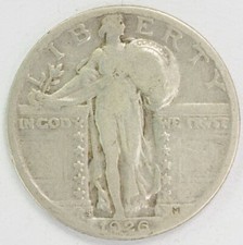 1926 Standing Liberty Quarter Dollar US 90% Silver 25 Cent Coin Philadelphia