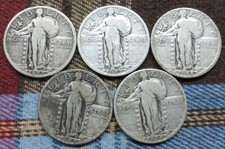 Run of 5 Standing Liberty Silver Quarters, 1926, 1927, 1928, 1929-S, 1930