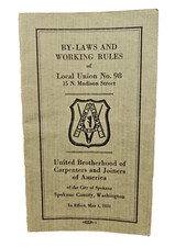 Union United Brotherhood of Capenters & Joiner Vintage By-Laws 1932 Antique